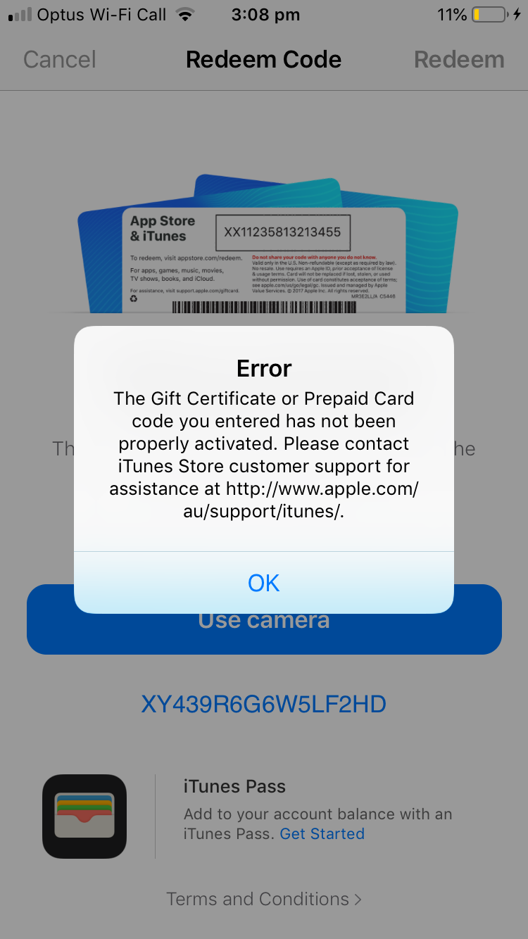 Apple Gift Card Code Not Valid : Copy the unique itunes code and write it in a safe place.. Generate your own apple gift card code. One card, millions of ways to enjoy it. Gift cards do not expire and are not subject to dormancy or other fees. Yes, i want a code! Plus, apple itunes gift card can always serve as a good present for a friend who loves to read;